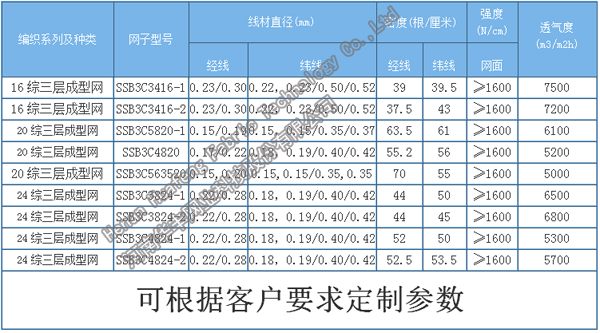SSB三層成型網(wǎng)采用上中下三層結(jié)構(gòu)設(shè)計(jì),上層采用較細(xì)直徑的徑線、緯線和平紋組織結(jié)構(gòu),提高細(xì)小纖維及填料留著率,改善紙頁的成紙均勻度和平滑度,紙頁網(wǎng)痕輕、易剝離。下層采用較粗直徑的徑線和緯線,提高成型網(wǎng)結(jié)構(gòu)穩(wěn)定性和使用壽命。中間采用成對(duì)的緯線將上下兩層精密地連接成一體,使上下兩層不產(chǎn)生相對(duì)搓動(dòng)和滑移。三層成型網(wǎng)成紙質(zhì)量好、脫水能力強(qiáng)、縱橫向挺度高、運(yùn)行穩(wěn)定性好、使用壽命長,在高車速紙機(jī)上得到廣泛應(yīng)用。